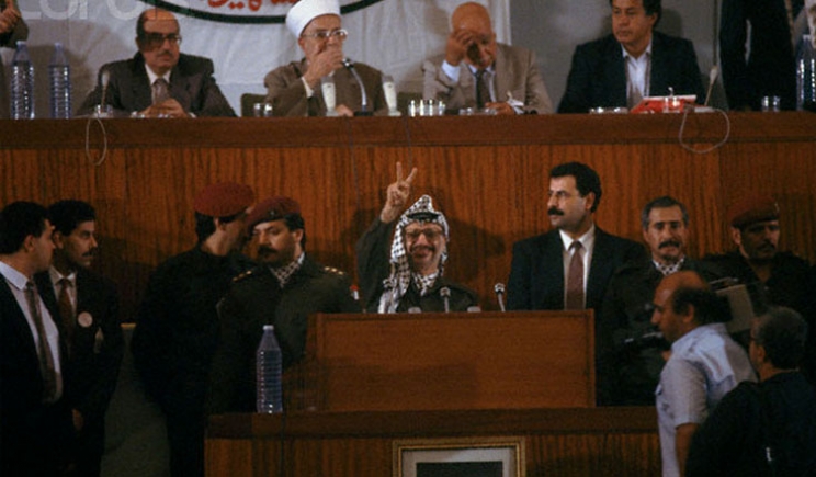 In 1988, Darwish wrote the Palestinian Declaration of Independence, proclaimed to a standing ovation by Yasser Arafat at the 19th Palestinian National Council. The document calls for an independent state of Palestine, open to “Palestinians wherever they may be,” with Jerusalem as its capital. In the piece, Darwish calls once again for the fortitude of Arab-Palestinian identity, saying that Arab-Palestinians have “triumphed over the plan to expel us from history.”