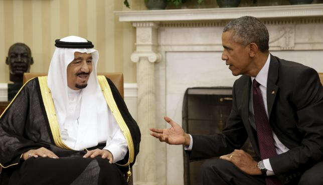 U.S. President Barack Obama (R) meets with Saudi King Salman bin Abdulaziz in the Oval Office of the White House in Washington September 4, 2015. REUTERS/Gary Cameron