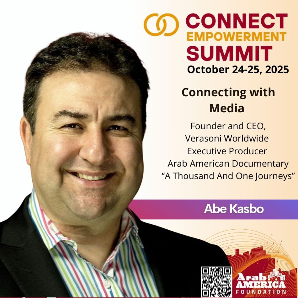 Abe Kasbo is a Syrian-American entrepreneur, filmmaker, and marketing strategist dedicated to elevating Arab American voices. He is the founder and CEO of Verasoni Worldwide, an integrated marketing and public relations firm serving diverse industries, and the creator of “A Thousand and One Journeys: The Arab Americans,” an award-winning documentary that chronicles the contributions of Arab Americans to U.S. history and culture. A sought-after public speaker, Kasbo is recognized for his expertise in storytelling, branding, and cross-cultural communication. Through his work, he champions inclusion, challenges stereotypes, and fosters understanding between communities. He continues to mentor and inspire emerging Arab American leaders nationwide.