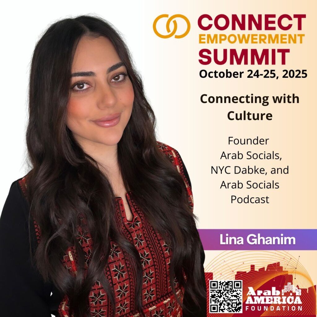 Lina Ghanim is a Palestinian Entrepreneur based in New York City. Lina is the founder of several community-focused initiatives, including Arab Socials, NYC Dabke, and Arab Socials Podcast, which aim to connect and empower Arab communities through social media and events. With a focus on community building, she curates gatherings that celebrate identity, amplify voices, and foster lasting networks among Arab Americans across the nation. She will organize a special event for young professionals on Friday evening.