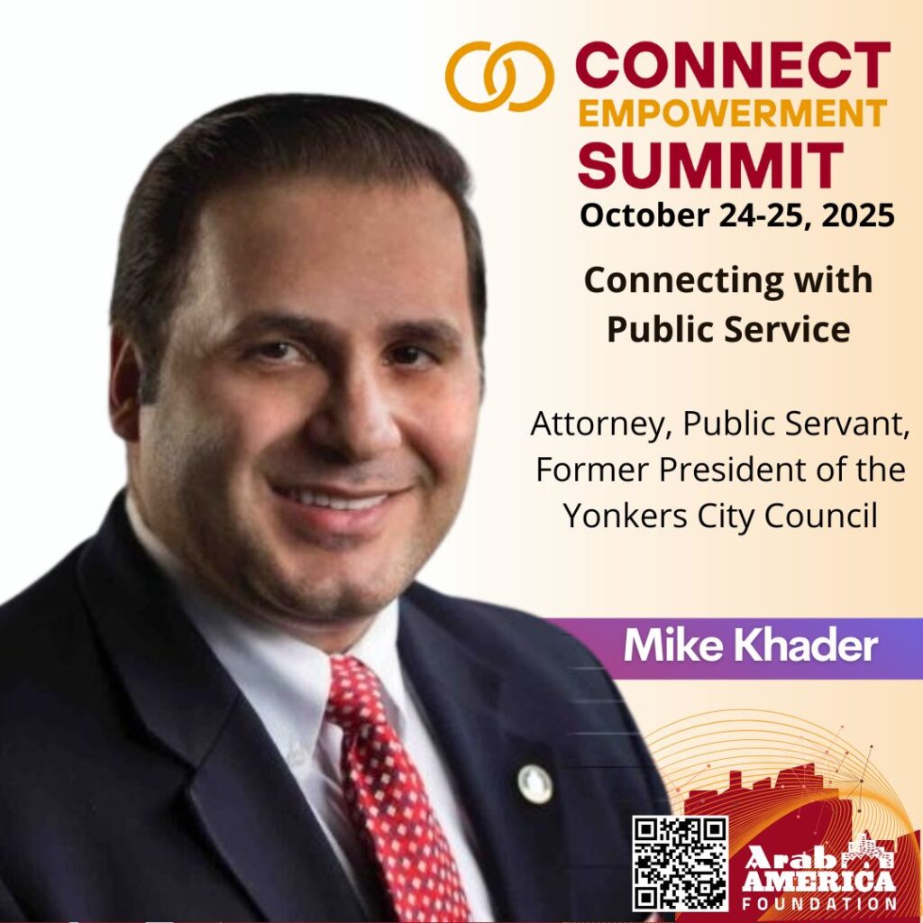 Mike Khader is an attorney, public servant, and former President of the Yonkers City Council, where he became the highest-ranking Arab American elected official in New York. A lifelong resident of Yonkers and the son of Jordanian immigrants, he has dedicated his career to advocating for working families, expanding opportunity, and strengthening civic engagement. As City Council President, Khader championed policies to improve education, public safety, and economic development while ensuring government remained accountable and inclusive. Proud of his Arab American heritage, he remains deeply committed to community service, mentoring young leaders, and fostering bridges across diverse communities.
