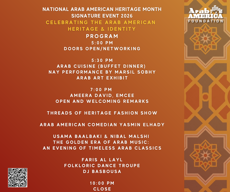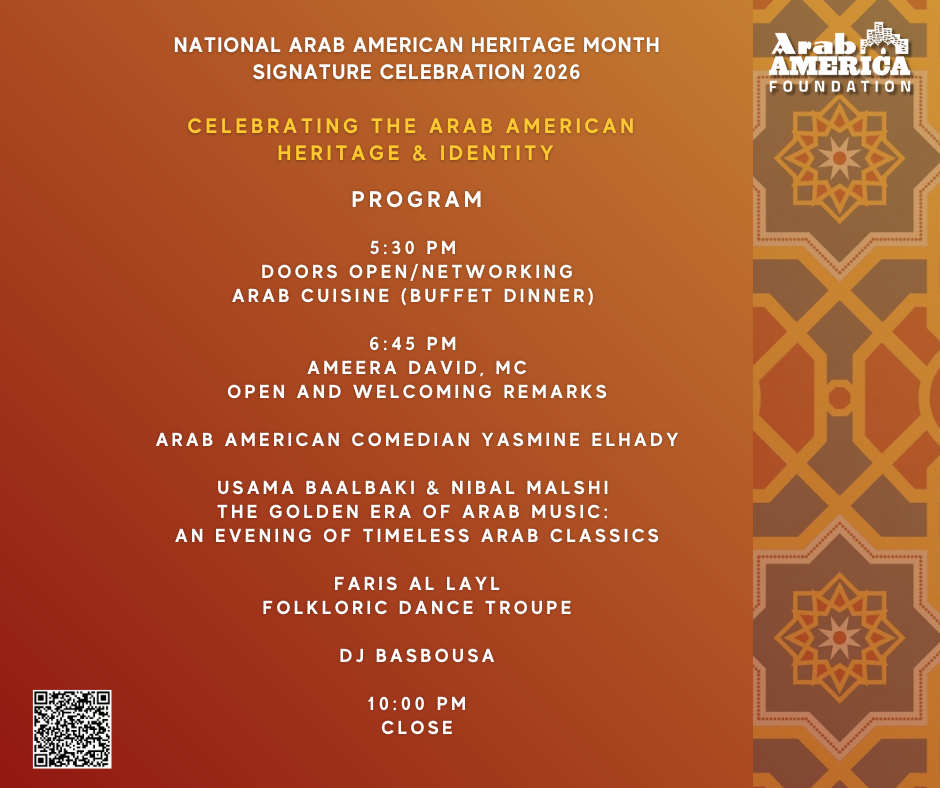 Throughout April, Arab America Foundation will amplify community stories and events through ArabAmerica.com and social media. Weekly features will highlight cultural events across the U.S. and compelling stories of Arab American achievement. A comprehensive resource guide is also available, offering curated content on Arab and Arab American identity and culture.