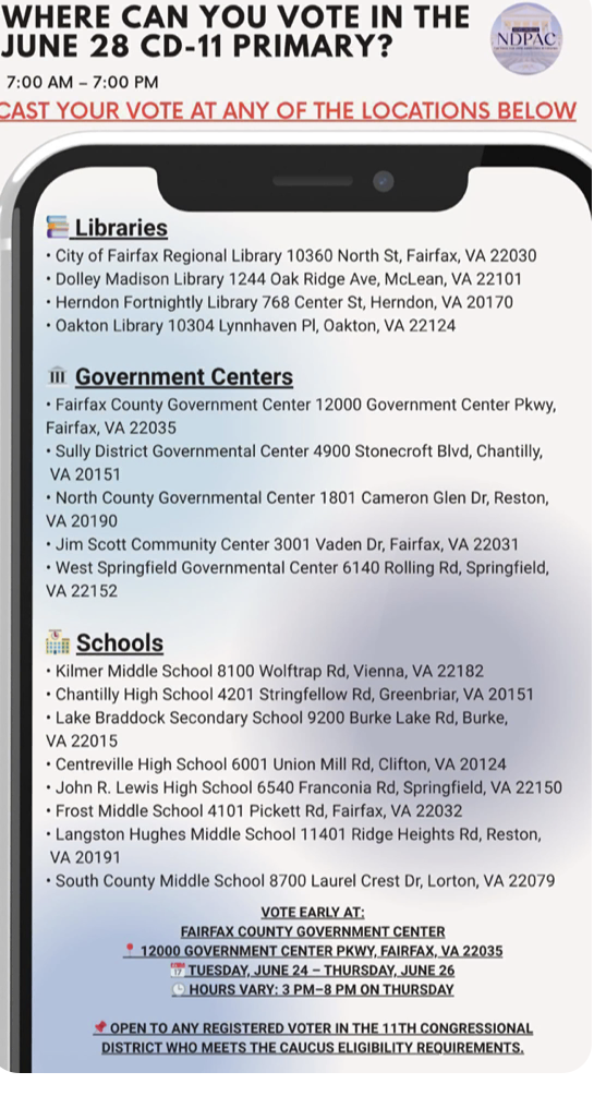 The coalition is urging all voters of conscience in Fairfax County and the surrounding areas to support Irene Shin in the upcoming Democratic primary on Saturday, June 28th, a special election with limited voting locations.