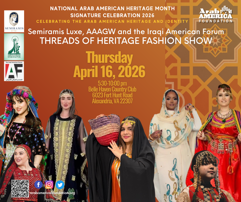 (WASHINGTON, DC) April 8, 2026 — On Thursday, April 16th, Arab fashion, dance, and pop culture take center stage at the ninth annual National Arab American Heritage Month Signature Event at Belle Haven Country Club, 6023 Fort Hunt Road, Alexandria, VA. This year’s theme, “Many Voices, One Community,” celebrates the diversity of Arab American identities while affirming the shared values that unite us.