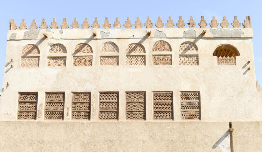 Privacy is a key element in Islamic architecture, and this is reflected in the use of latticed wooden screens that cover windows and balconies. In Bahrain, these take the form of projecting wooden balconies enclosed with intricately carved woodwork. These features allow light and air to enter while ensuring privacy for the inhabitants, especially women.