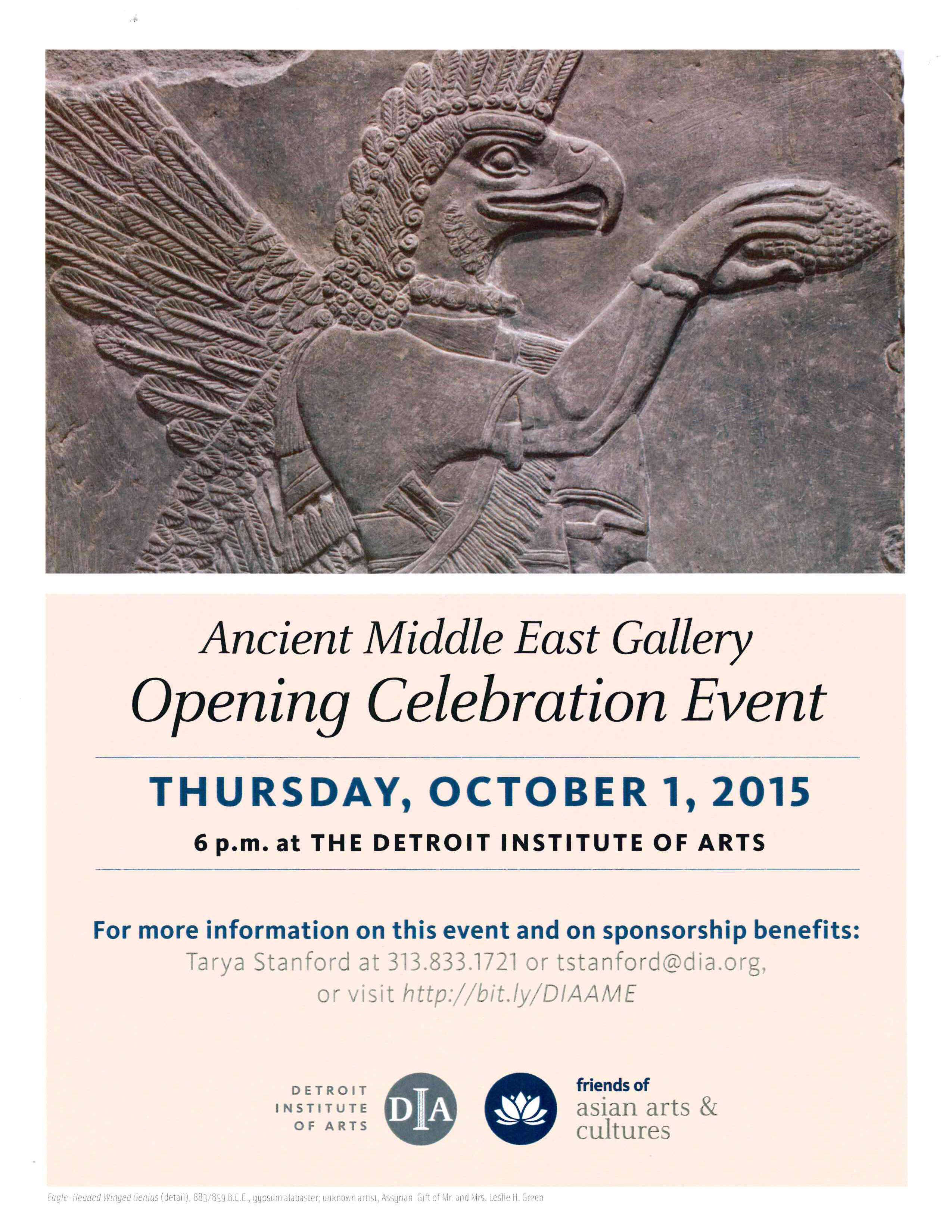 On Thursday, October 1, 2015, the Detroit Institute of Arts (DIA) will celebrate the grand opening of their new Ancient Middle East Gallery.