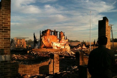 The Illinois attacks come on the heels of an incident in Joplin, Mo., where a mosque was reduced to ashes by a powerful fire last Monday. Although authorities are investigating whether it was an act of arson, a previous fire at the mosque over the July 4 weekend was determined to be arson. Elsewhere, a mosque in North Smithfield, R.I., was vandalized by a man who “head-butted” and pulled down signage. Teens were arrested on hate crime charges for taunting worshipers by throwing eggs and oranges and shooting bb pellets at a mosque in Hayward, Calif. Vandals defaced the Grand Mosque of Oklahoma City with paintballs, and, in an especially malicious incident, women hurled pig legs at a mosque site in Ontario, Calif., while people were leaving the temporary prayer space.