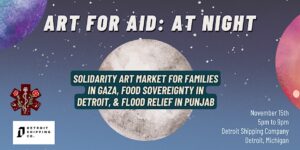 At Art for Aid markets, vendors donate a portion of their proceeds—which are split among local, regional, and international causes. Donations from this event will be split between Palestinian mutual aid efforts, Detroit food sovereignty work, and Punjab, India flood relief funds.
