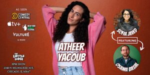 Atheer Yacoub, a Brooklyn-based, internationally touring comedian, brings hilariously relatable comedy from the front lines of culture clash—growing up as a Palestinian in Alabama, and the joys of disappointing her traditional Muslim parents. Her mix of silly and dark humor tackles identity, politics, and religion with sharp wit and unexpected twists.