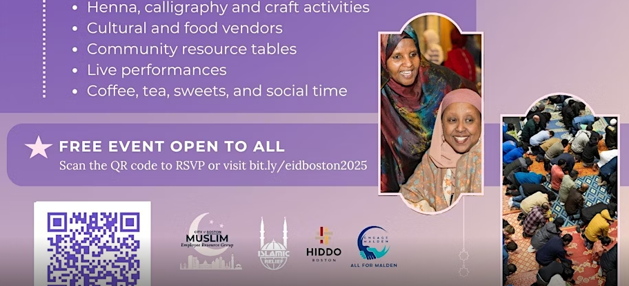AsSalaamu Alaikum! Join the City of Boston Muslim Employee Resource Group and our partners at the Eid Al Adha Festival on Sunday, June 8, 2025, from 3:00 PM to 7:00 PM at the Bruce C . Bolling Building, 2300 Washington Street, Boston 02119! This event is free and open to the public.