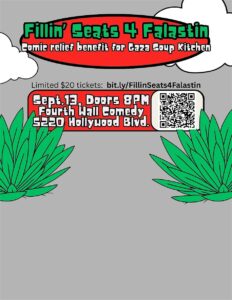 Thank you for supporting Gaza Soup Kitchen! This grassroots organization serves 3,000 meals daily and for every $5 donated, a family can be fed a hot, nourishing meal. We are asking our community to bring an additional $20 tax-deductable donation to the event. A QR code will be provided for GPay, PayPal, Venmo, Cash App, or ACH payments otherwise we will be able to accept cash and checks.