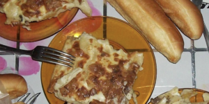 Macaroni bechamel is a popular Egyptian dish made with ground beef between layers of penne noodles with béchamel.