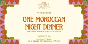 Join us this March for a special edition of The City Spoon Supper Club hosted at Marrakesh in Society Hill, Philadelphia. Together with Solo Girl Wanders, we’re bringing you a 7-course Moroccan dining experience* designed for connection, conversation, and community.