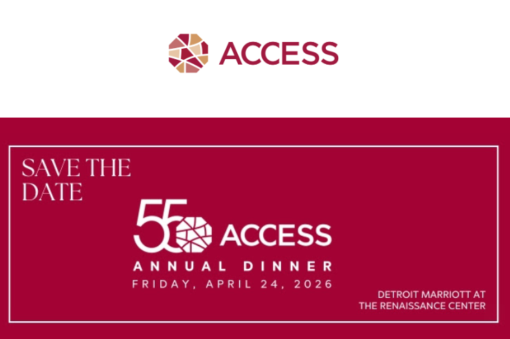 We’re thrilled to announce that the ACCESS 55th Anniversary Dinner will take place on Friday, April 24, 2026, at the Detroit Marriott at the Renaissance Center.