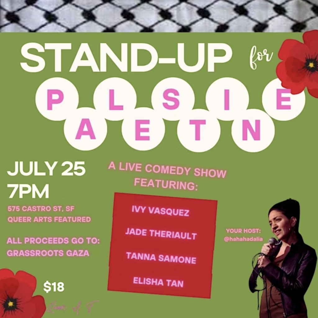 Hosted by Bay Area local queer Palestinian comic, @hahahadalia
