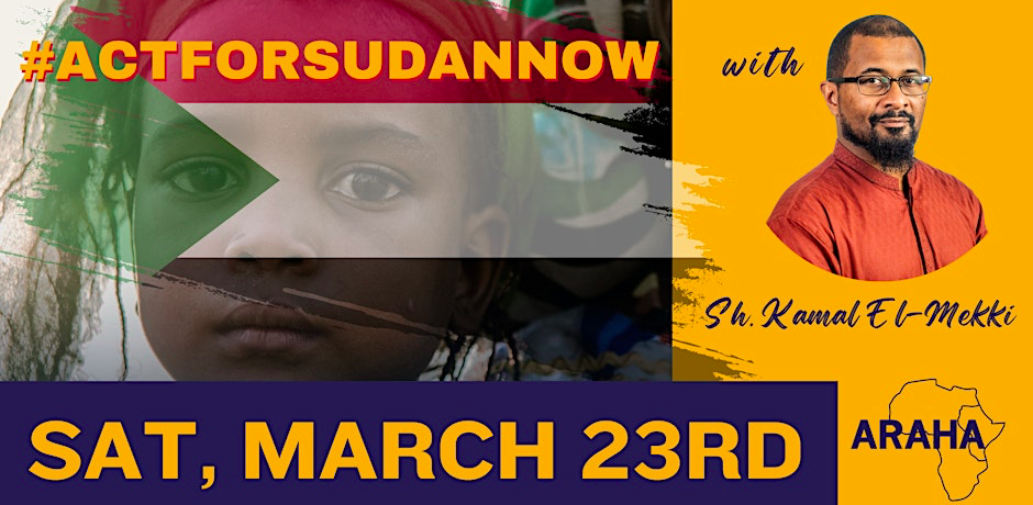 Join ARAHA, Sh. Kamal El-Mekki & our Sudanese Community for an urgent fundraiser. Let’s Learn, support, and act together. #ActforSudanNow
