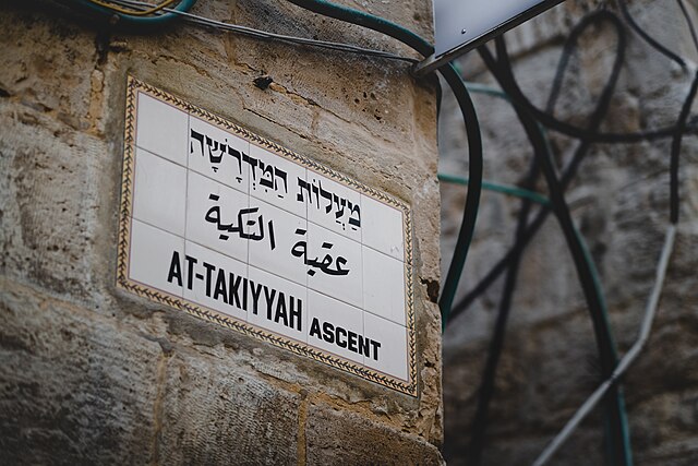 Variation within Arabic in Jerusalem, particularly between Standard Arabic and Palestinian colloquial forms, further complicates this dynamic. As signage often privileges formal Arabic, colloquial identity markers are erased. Standard Arabic functions as the “High” variety, associated with religion, heritage, and authority. Colloquial varieties are valued for their role in expressing intimacy and belonging. The coexistence of Standard Arabic in signage and colloquial Arabic in speech reflects a layered prestige system: higher prestige attached to Standard Arabic, and lower prestige attached to colloquial language.
