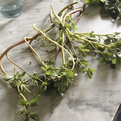 purslane—baqle—picked and washed for salad © linda dalal sawaya 2015