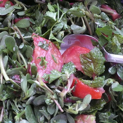Lebanese purslane salad © linda dalal sawaya 2015
