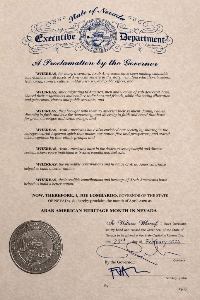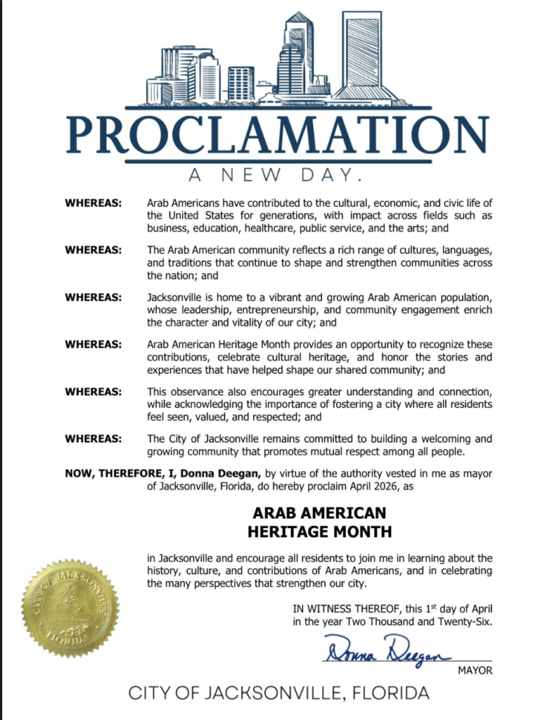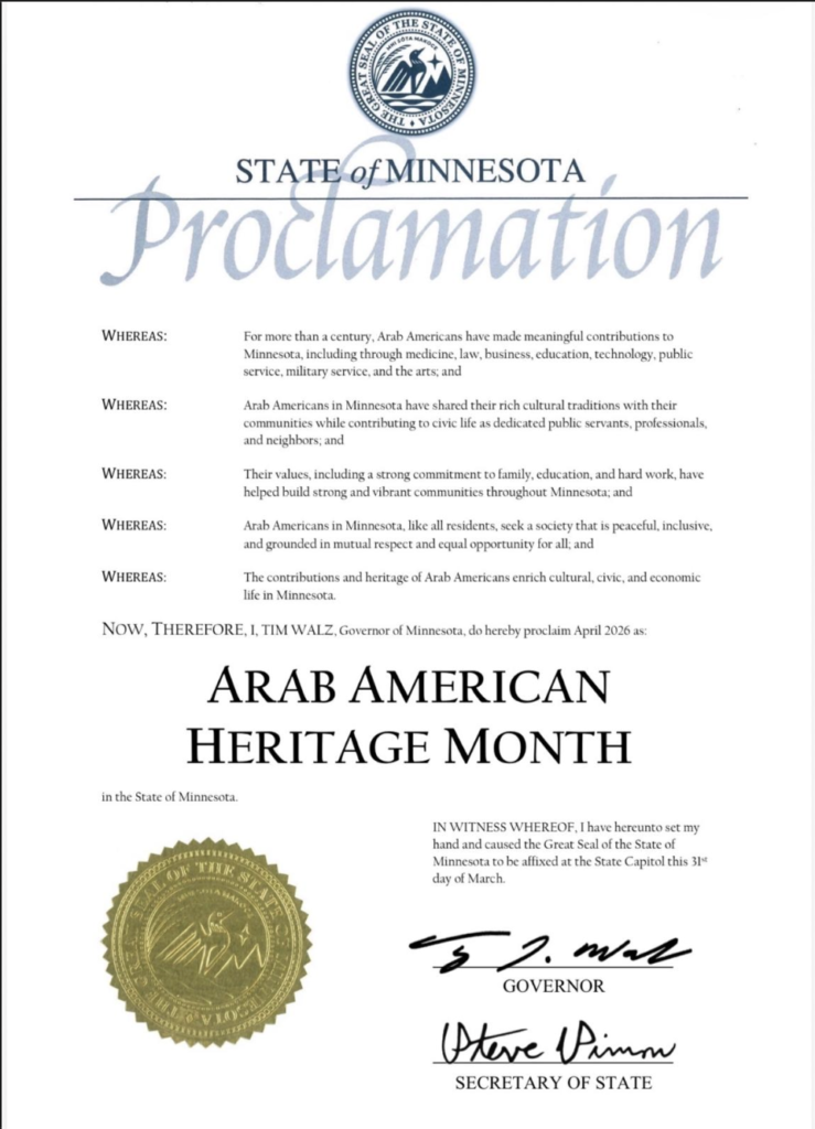 Since launching the National Arab American Heritage Month initiative in 2017, our movement has received numerous proclamations recognizing Arab Americans’ contributions. This year, the Arab America Foundation salutes more than 200 Arab American volunteers across 26 state teams who are working with governors, state officials, mayors, school boards, and county leaders nationwide to secure official recognitions.