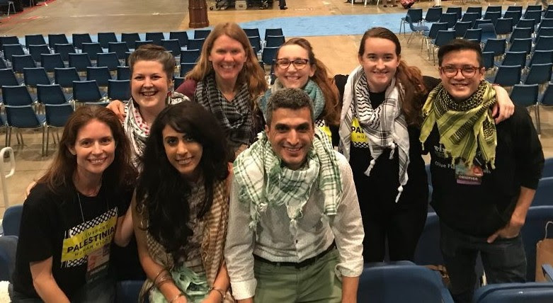 Tarek Abuata and other members of the U.S. Campaign for Palestinian RightsWhile some members at the hearing suggested that the move to divest might “close the channels of communication” and “destroy any chance of reconciliation” with Israel, Rev. Candice Frazier questioned, “how can we play a role in peacemaking when we are already invested in the oppression of a people?”