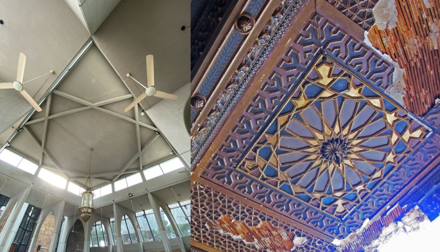 This design move could be analyzed as a literal subversion or redirection of traditional architectural language. It’s not defiance for its own sake, but rather a considered reworking of formal elements to suit a new urban and localized spiritual context. This can also be seen in the subtle detail of the geometric metal roof frame, which references the ceiling ornamentations of traditional Lebanese architecture.