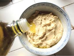 Most American recipes skimp on this rich sesame seed puree, replacing it with olive oil or other unnecessary additives to achieve a greater dip-like consistency. For maximum nutty flavor and smooth texture, a ratio of 4 parts chickpeas to 3 parts tahini is recommended. (For every cup of chickpeas, use ¾ cup tahini).