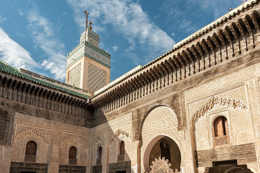 Similarly, madrasas, or Islamic schools, are architectural gems. The Bou Inania Madrasa in Fez, established in the 14th century by the Marinid dynasty, combines function and beauty: classrooms and dormitories surround a richly decorated courtyard, with zellij mosaics, cedar latticework, and Kufic inscriptions that blend education with sacred expression.