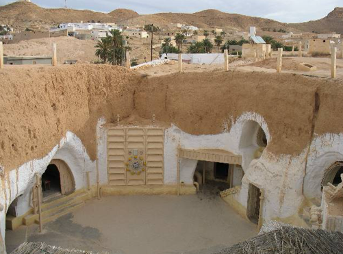 Equally fascinating are the troglodyte homes of Matmata. Carved into the soft rock of the Dahar plateau, these subterranean dwellings feature a central pit, with rooms dug into the surrounding walls. Their design ensures thermal insulation, with cool interiors in summer and warmth in winter – long before air conditioning was invented. Some of these homes are still inhabited today, while others have become guesthouses and tourist attractions. One even famously served as Luke Skywalker’s home in Star Wars.