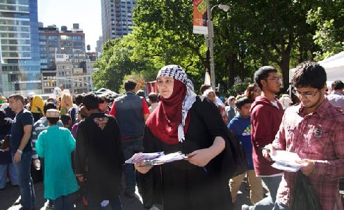 In New York, the initiative sends out about twenty volunteers, mostly university students in their early twenties, to the streets, fairs, rallies, schools and mosques to take people’s contact information so they could receive voting cards and cast their ballots in this fall’s presidential and local elections.